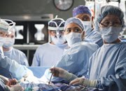 ほどなくしてカリーのオペが行われ、デレクが硬膜下と硬膜外血腫を、オーウェンとベイリーが肝臓裂傷を処置します。ルーシーは胎児をモニター。ところが、出血がひどい上に陣痛が始まってしまったから大変! 今回の治療の責任者であるオーウェンは、このままではカリーの体が持たないと判断。オペは中断され、カリーはICUで体力の回復を待ってから再オペに挑むこととなります。